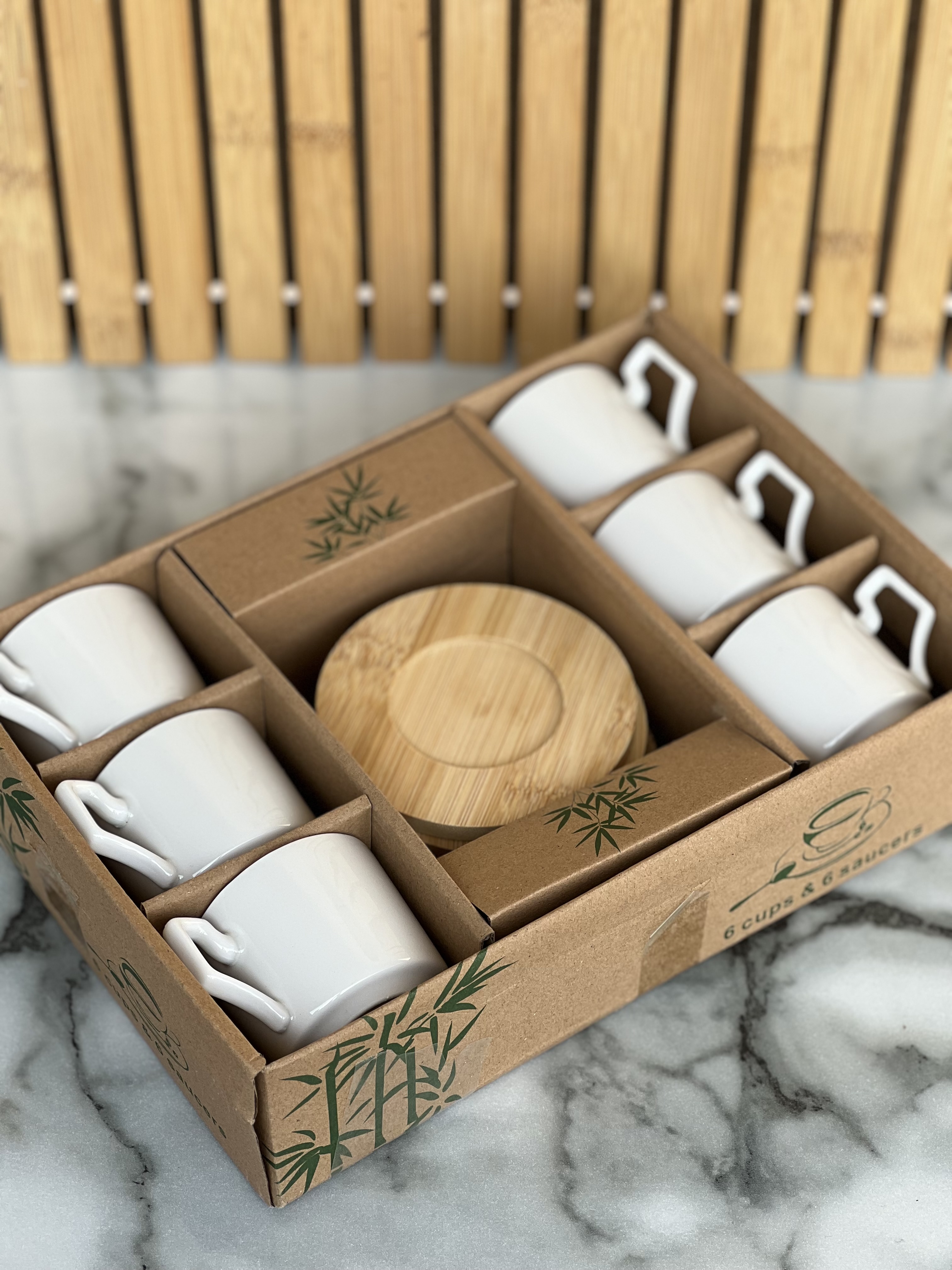 قهوه خوری سرامیکی با نعلبکی بامبو