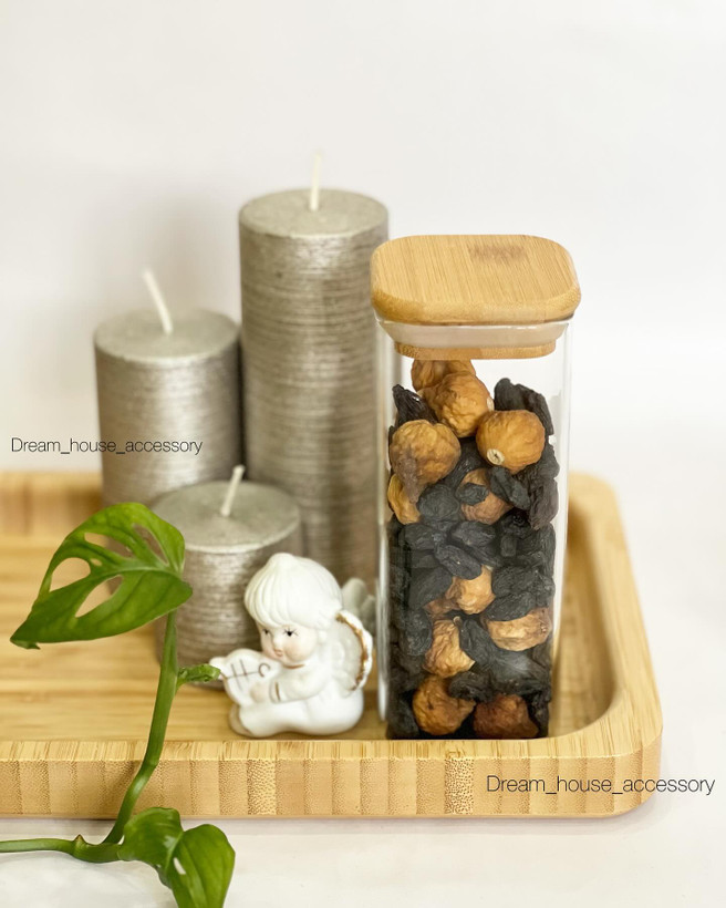 بانکه پیرکس مربع درب بامبو ارتفاع: 15cm قطر: 6cm
